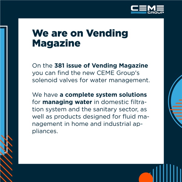 On the 381 issue of Vending Magazine you can find the new CEME Group's solenoid valves for water management See the page