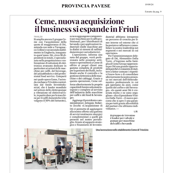 La Provincia Pavese has highlighted CEME Group's acquisition of DTI, emphasizing the strategic importance of this move. This acquisition is ...