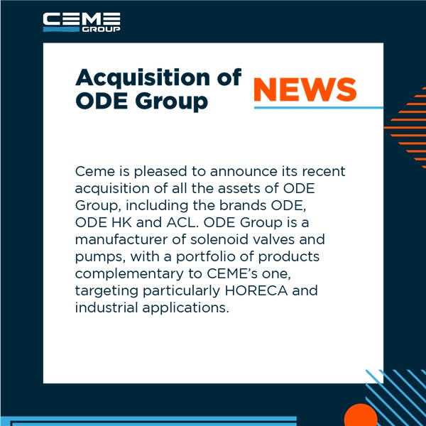 We are pleased to announce the acquisition of ODE Group Ceme is pleased to announce its recent acquisition of all the assets of ODE Group, ...