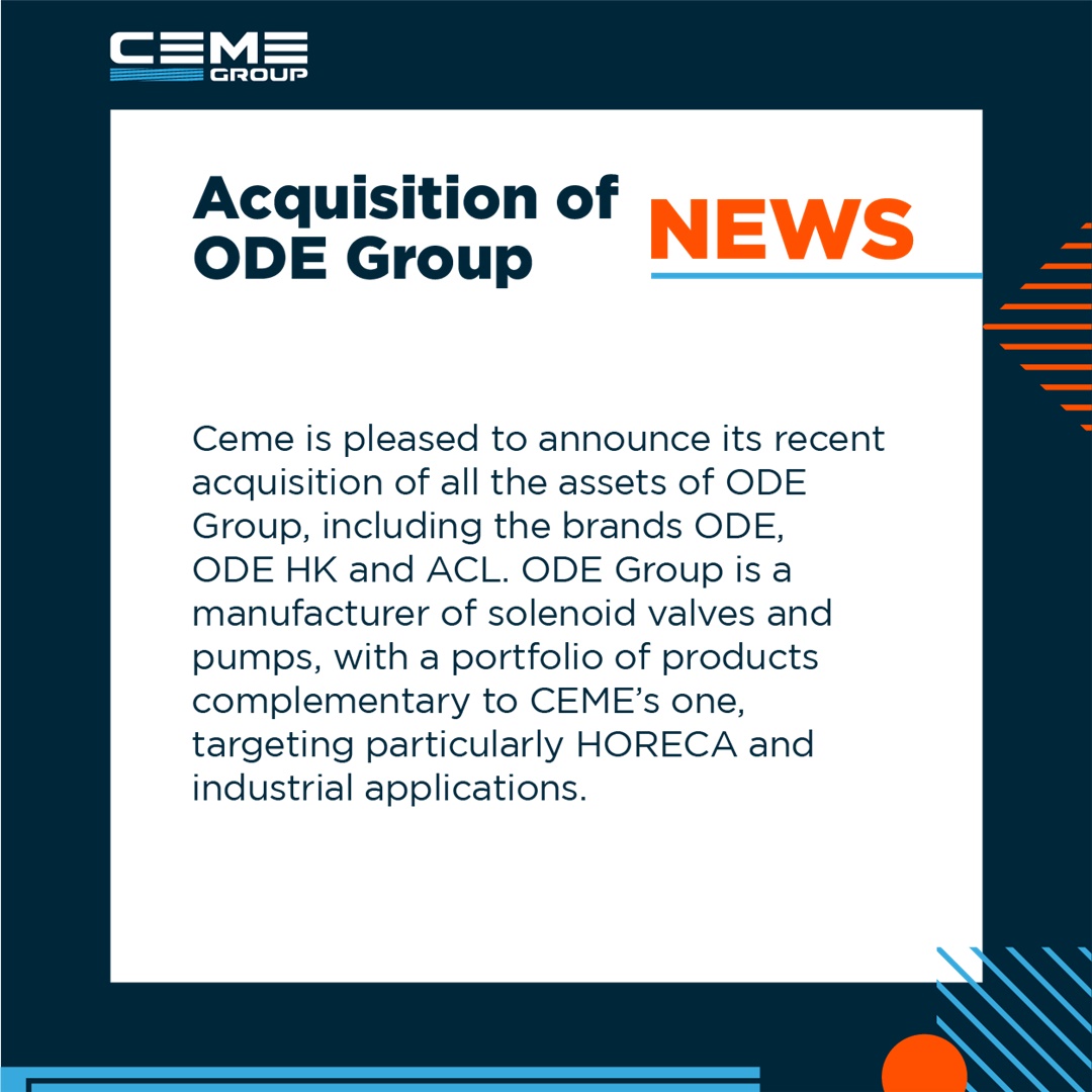 This acquisition is part of CEME strategy of growth and is meant to create value for stakeholders. The main benefit for our customers will be an enlarged product offering and a consolidated global presence, combining together the expertise and the capabilities of two leading groups.