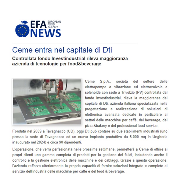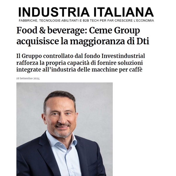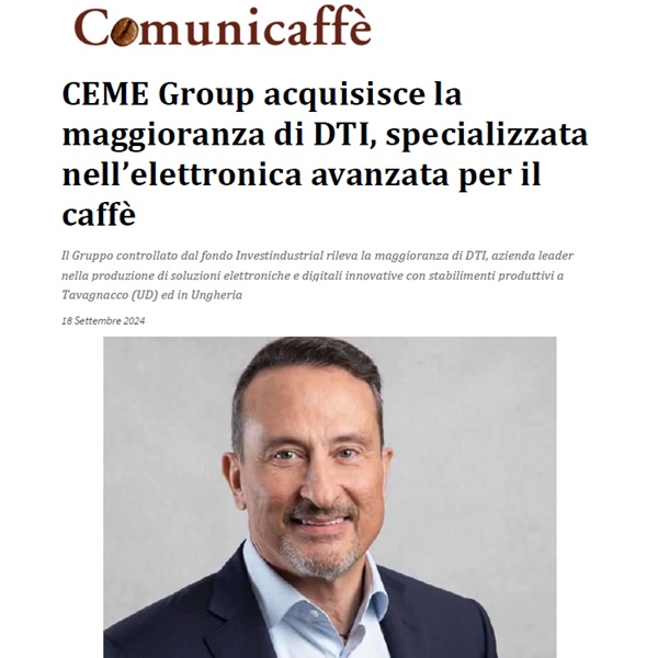 Comunicaffè has highlighted CEME Group's acquisition of DTI, focusing on the strategic value of this move for our growth. The acquisition si...