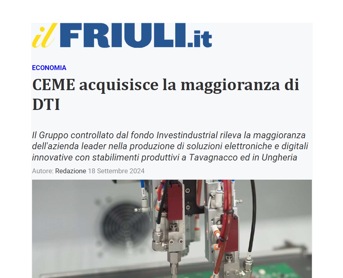 Friuli.it has reported on CEME Group's acquisition of DTI, stressing the importance of this decisive step in enhancing our market position. This acquisition confirms our commitment to innovation and sector development.