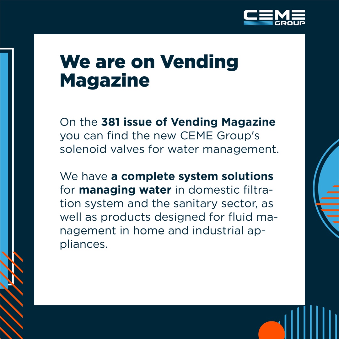 On the 381 issue of Vending Magazine you can find the new CEME Group's solenoid valves for water management